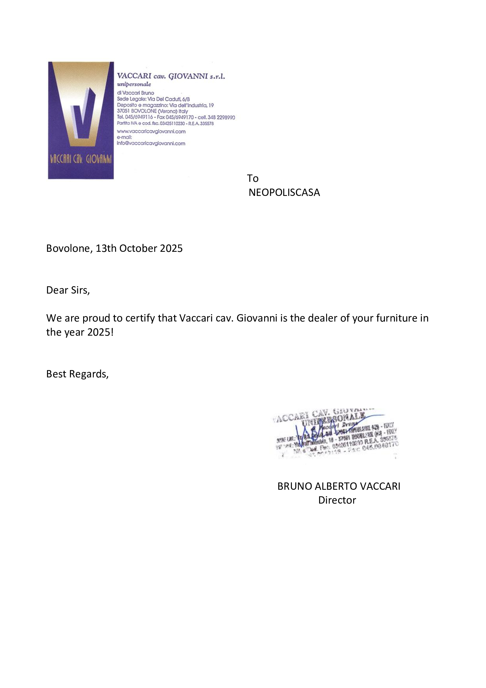 Итальянская фабрика VACCARI была создана Джованни Ваккари в 1955 году. Компания специализирована на производстве классической мебели ручной работы, выбирая высококачественные натуральные материалы и заботясь о мельчайших деталях отделки. В 1979 году основатель компании VACCARI Джованни Ваккари был награжден президентом Итальянской Республики, господином Пертини, званием Cavaliere del Lavoro за большой вклад в развитие отрасли экономического сектора. Весь свой опыт, который он приобрел за 25 лет ремесла, и страсть к мебельному искусству Ваккари старший передал своему сыну — Бруно Ваккари, который вырос в мастерской своего отца и, на сегодняшний момент, более сорока лет развивает фабрику Vaccari, качество мебели которой признано во всем мире.
