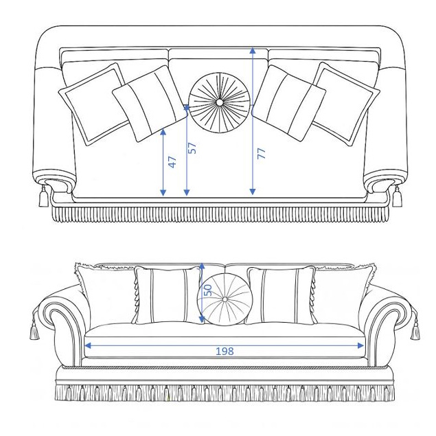 Диван-кровать 3-местный Luxor от Keoma. выполнен в ткани из ассортимента фабрики, по периметру идет эффектная бахрома, также, чехлы на подлокотниках. В комплекте идут декоративные подушки.